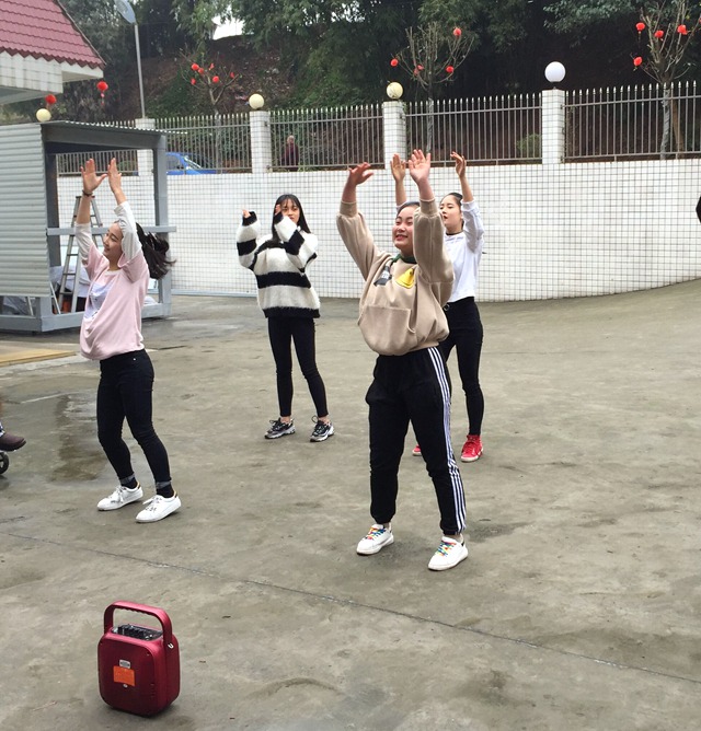 这是由同学们自编自导的舞蹈《快乐青春》。