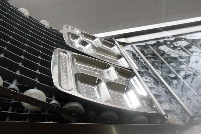 餐盘经过清水冲洗区