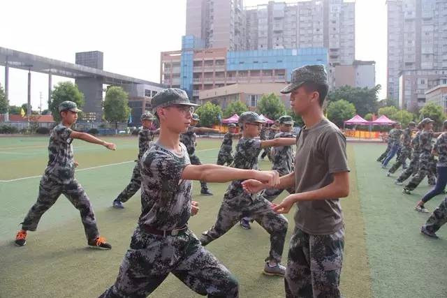 在部队教官的严格要求下,以及合理安排下,训练场地有同学们嘹亮的声音、英姿的身影、同时也充满欢声笑语。军训分为两个场地,篮球场的学员们练习四面转法、蹲下、跨立、稍息、解散、集合等项目,连贯、快速两个词是他们这几天的成果,足球场上是由我校男生组成的方队练习拳法,为一个动作要达到完美的程度,同学们反复练习,强健有力的拳头向我们张显出学习的热情。